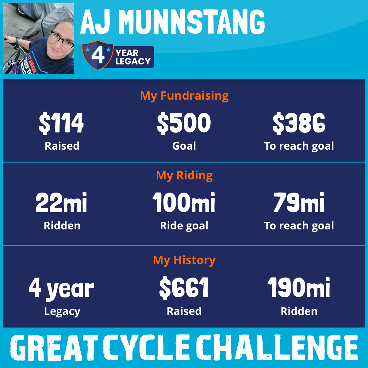 50 mi Ridden$116 Raised2023