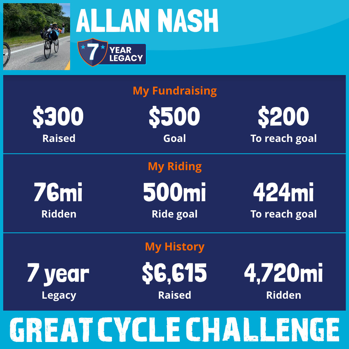 610 mi Ridden$1,163 Raised2022