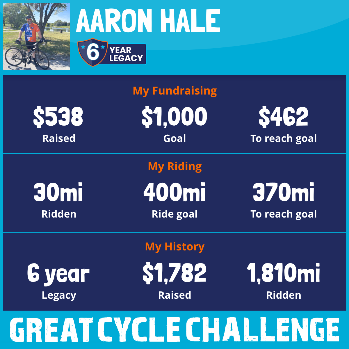 I am riding 400 mi for Devon. Please sponsor me and support my challenge to fight kids' cancer and save little lives.