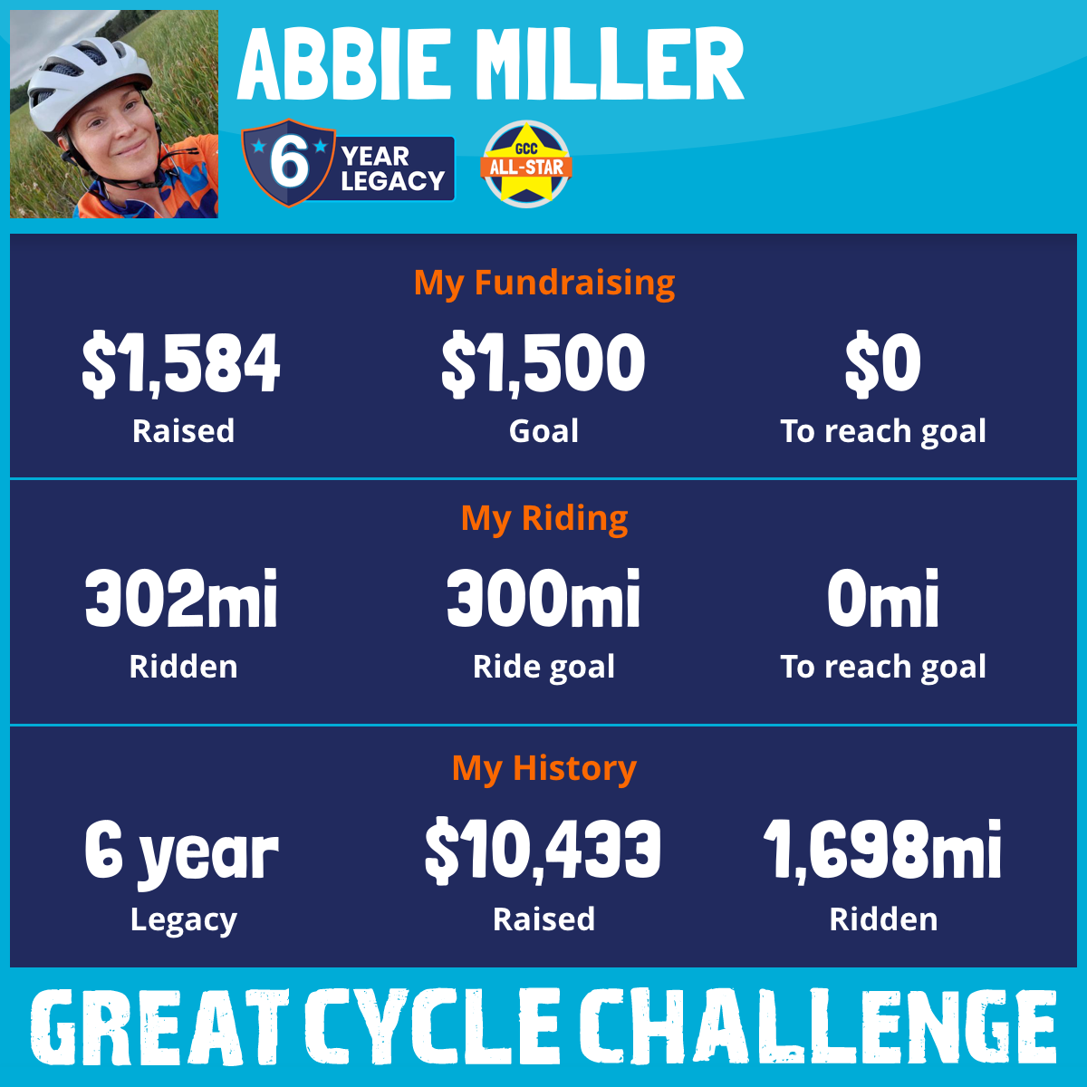 302 mi Ridden$1,584 Raised2025
