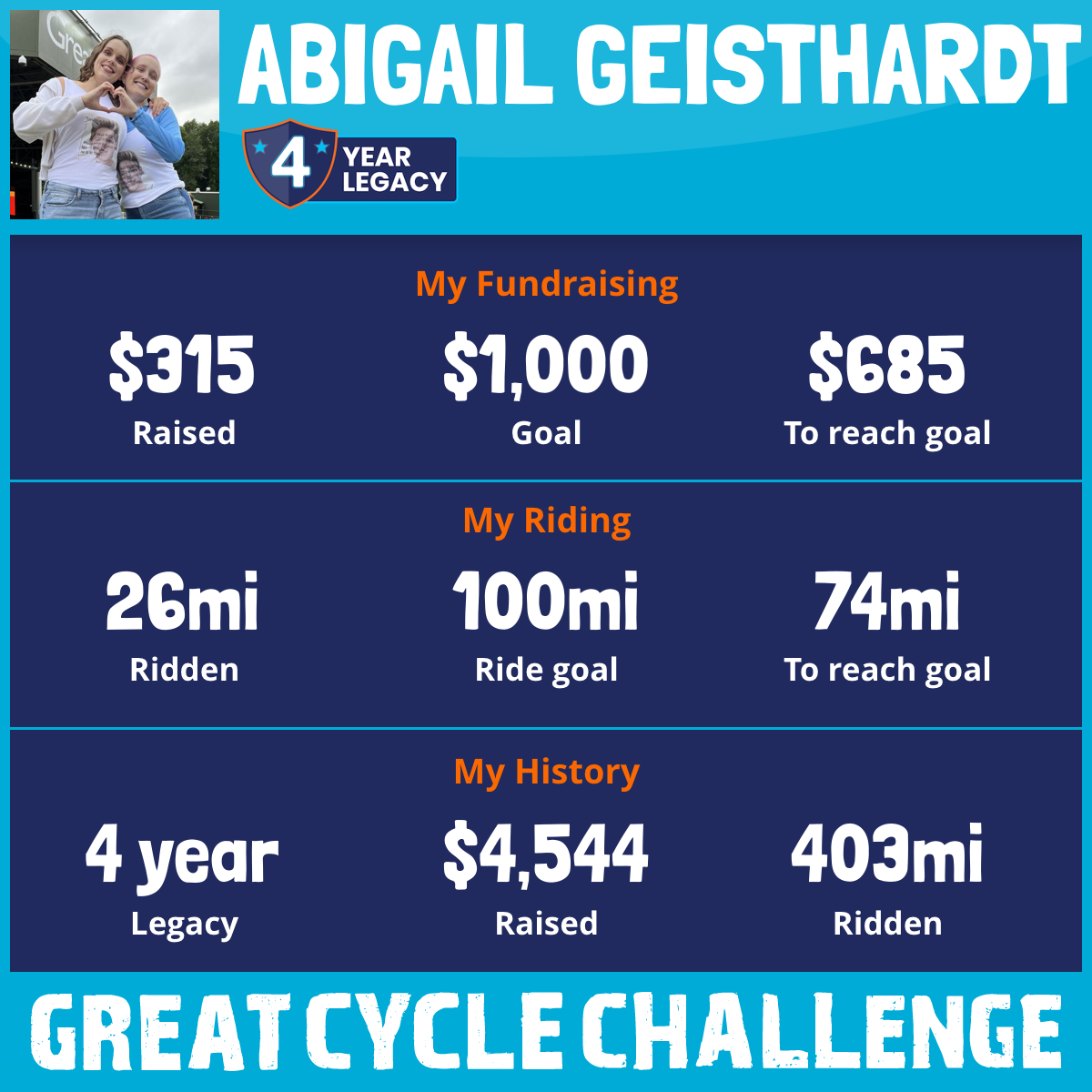 100 mi Ridden$1,141 Raised2023