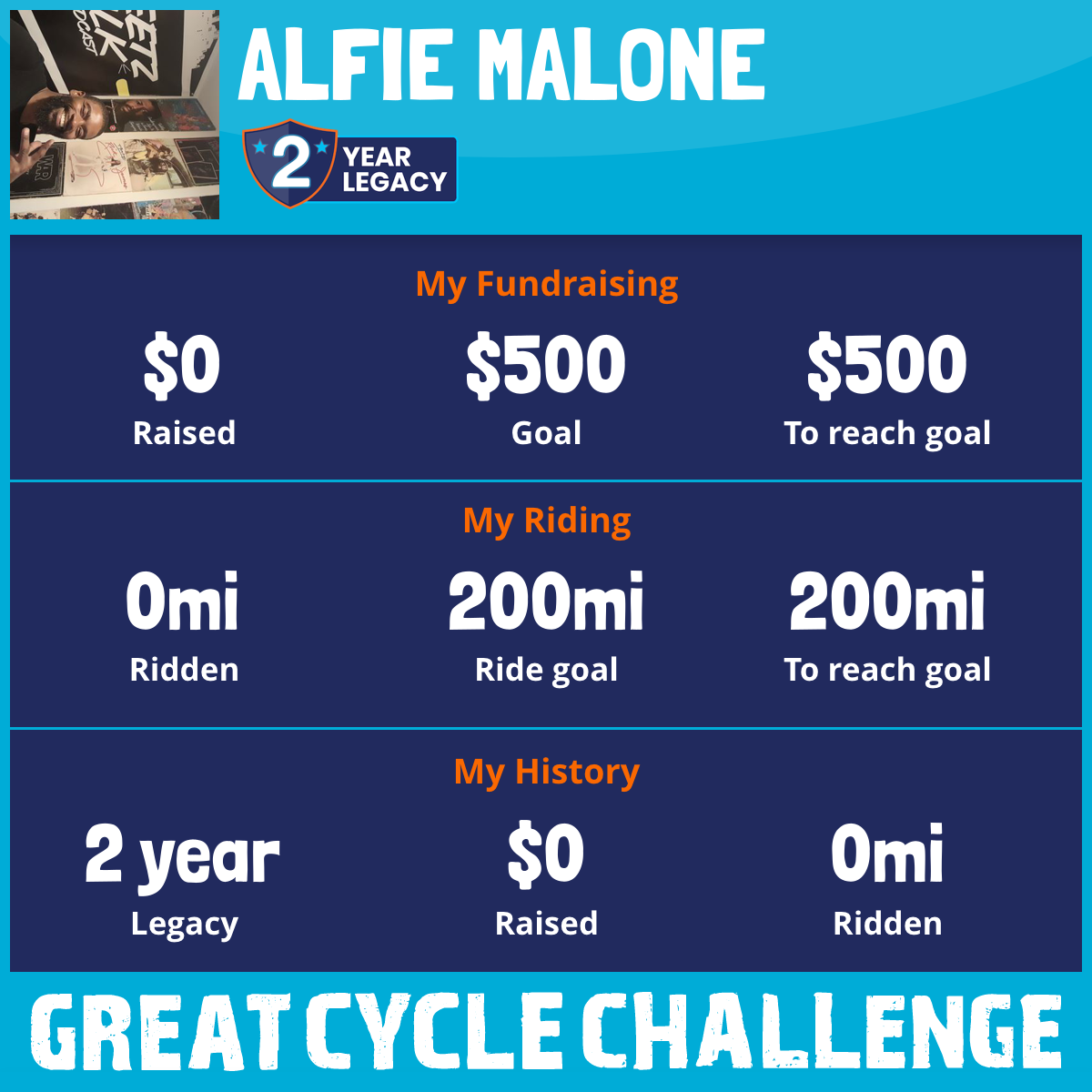 I've raised $0 My goal is $500 Donate Now