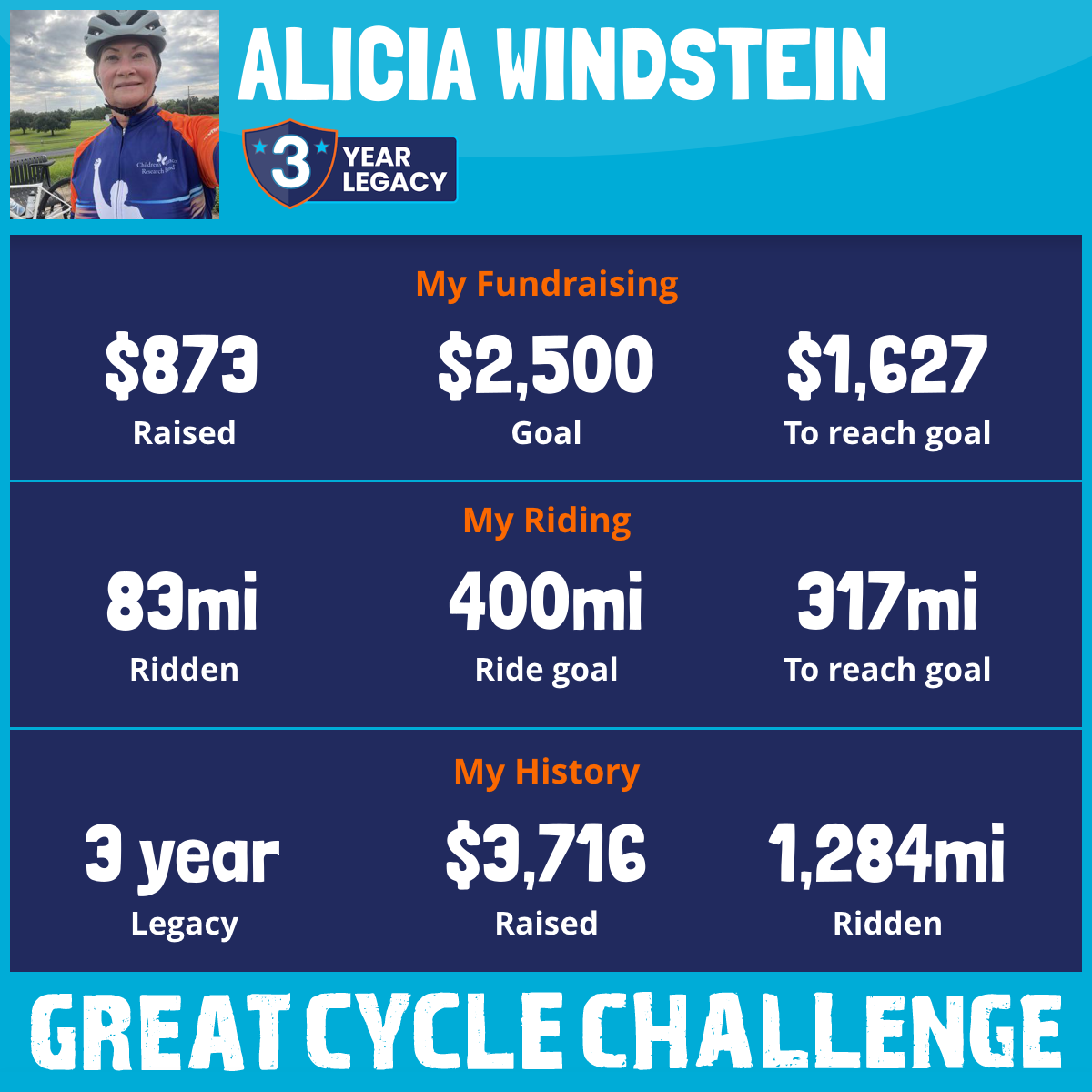 So I am raising funds through my challenge to help these kids and support Children's Cancer Research Fund to allow them to continue their work to develop lifesaving treatments and find a cure for childhood cancer.