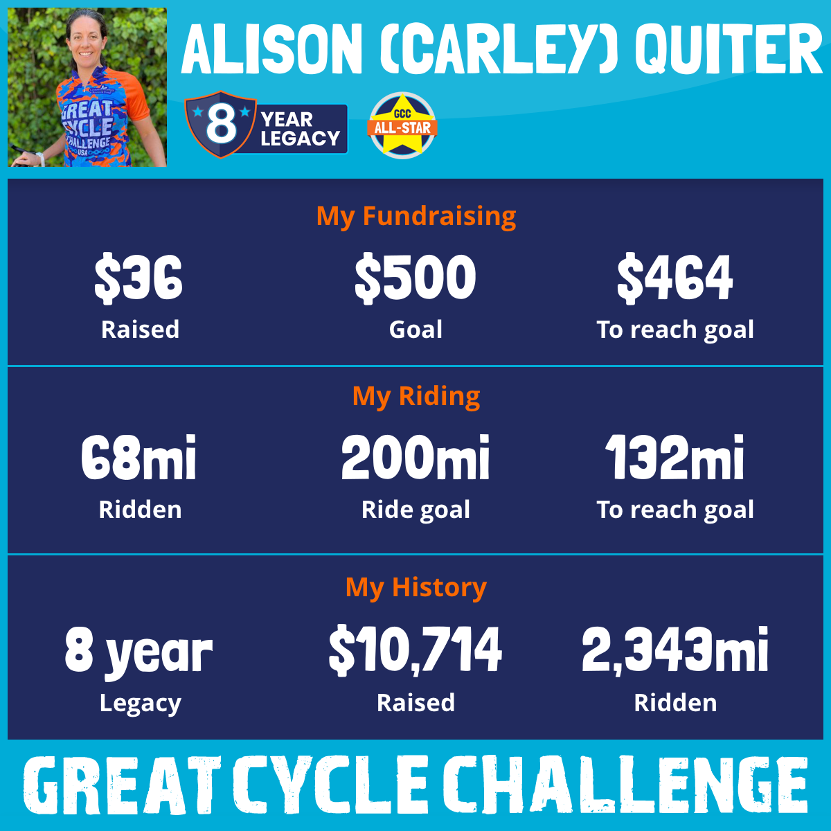 This September, I am taking part in the Great Cycle Challenge to fight kids' cancer! It will be my 8th year participating in this amazing challenge to support the Children's Cancer Research Fund. As a Pediatric nurse, I care for children with cancer. I usually care for children with brain tumors and cancer of the bones. It breaks my heart caring for children that were healthy and are suddenly faced with the challenges of cancer and cancer treatment.
