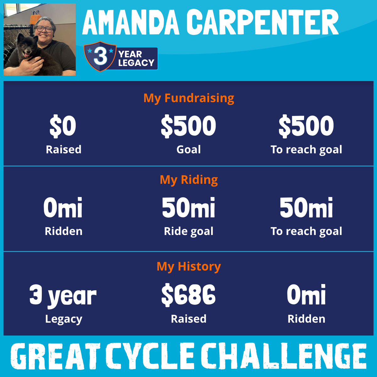 I am riding 50 mi in memory of my dad, Craig O’Neil Carpenter. Please sponsor me and support my challenge to fight kids' cancer and save little lives.