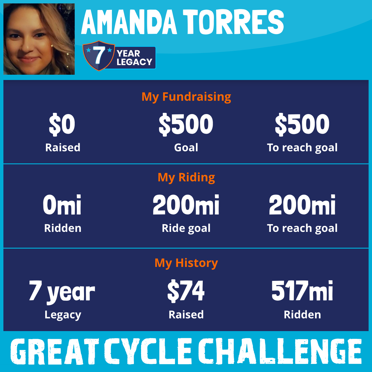 I am riding 200 mi in memory of Family member. Please sponsor me and support my challenge to fight kids' cancer and save little lives.