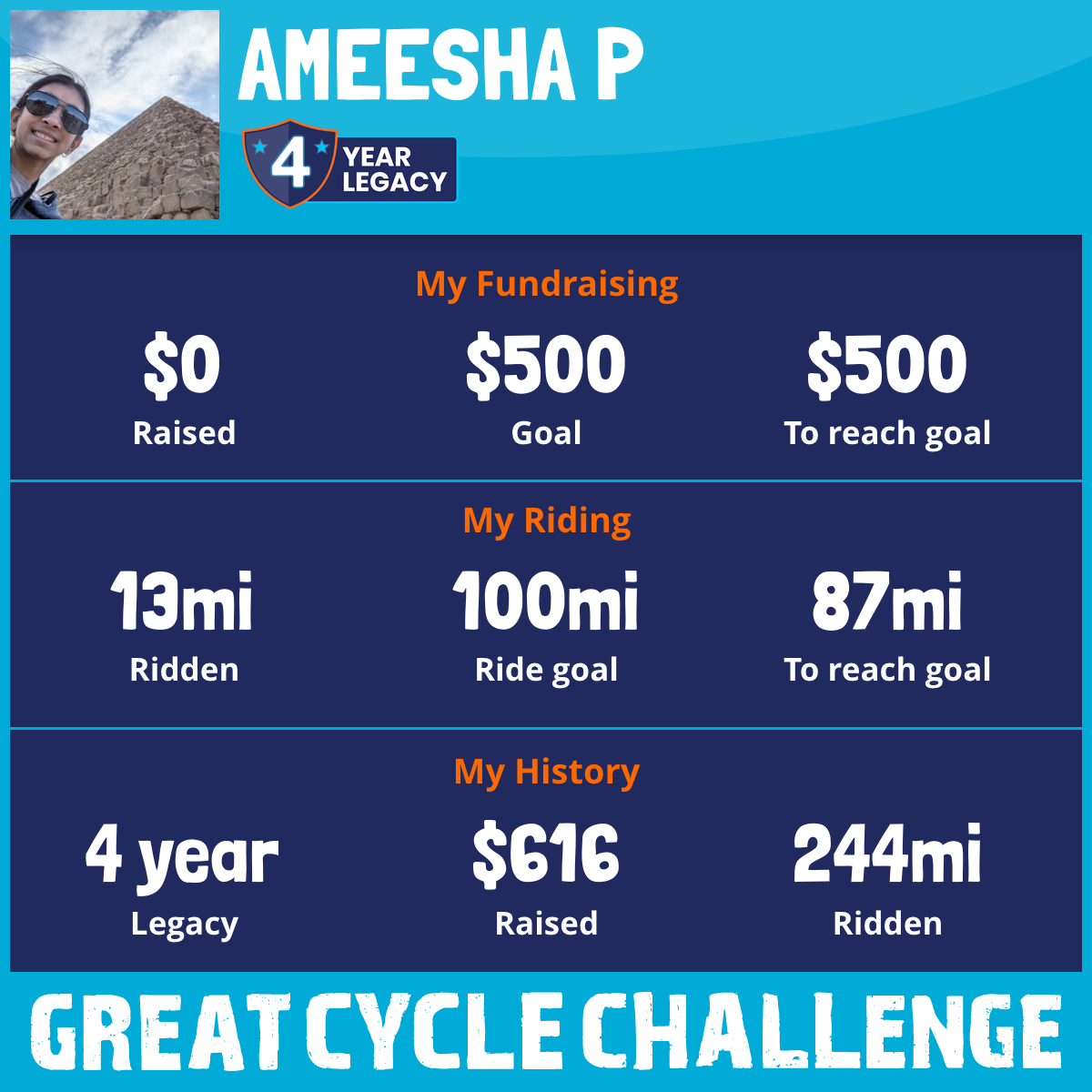 100 mi Ridden$609 Raised2025
