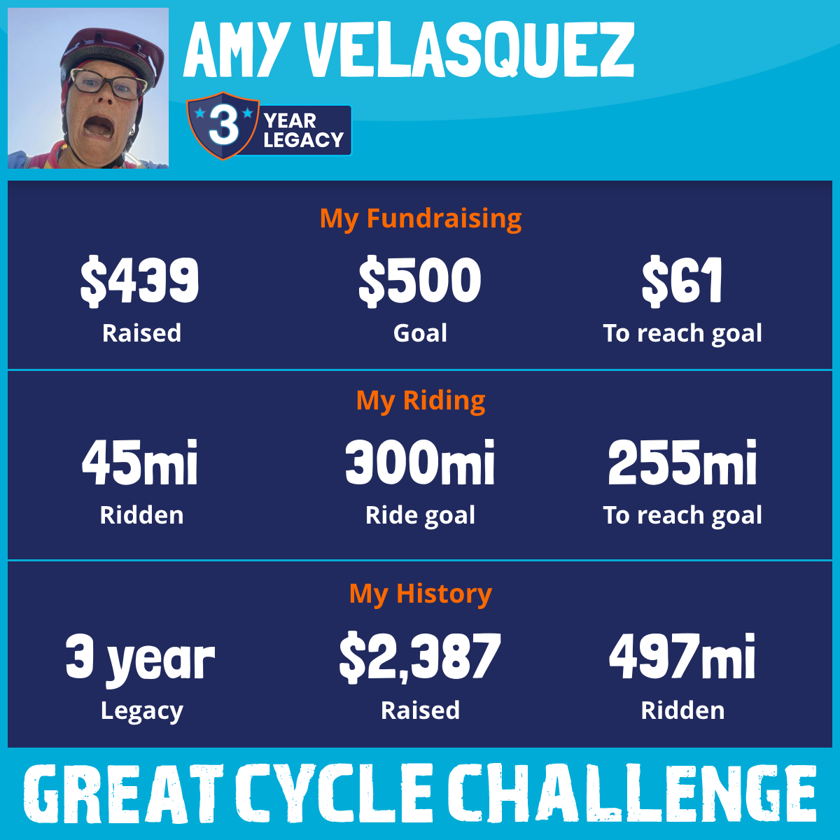301 mi Ridden$1,170 Raised2023