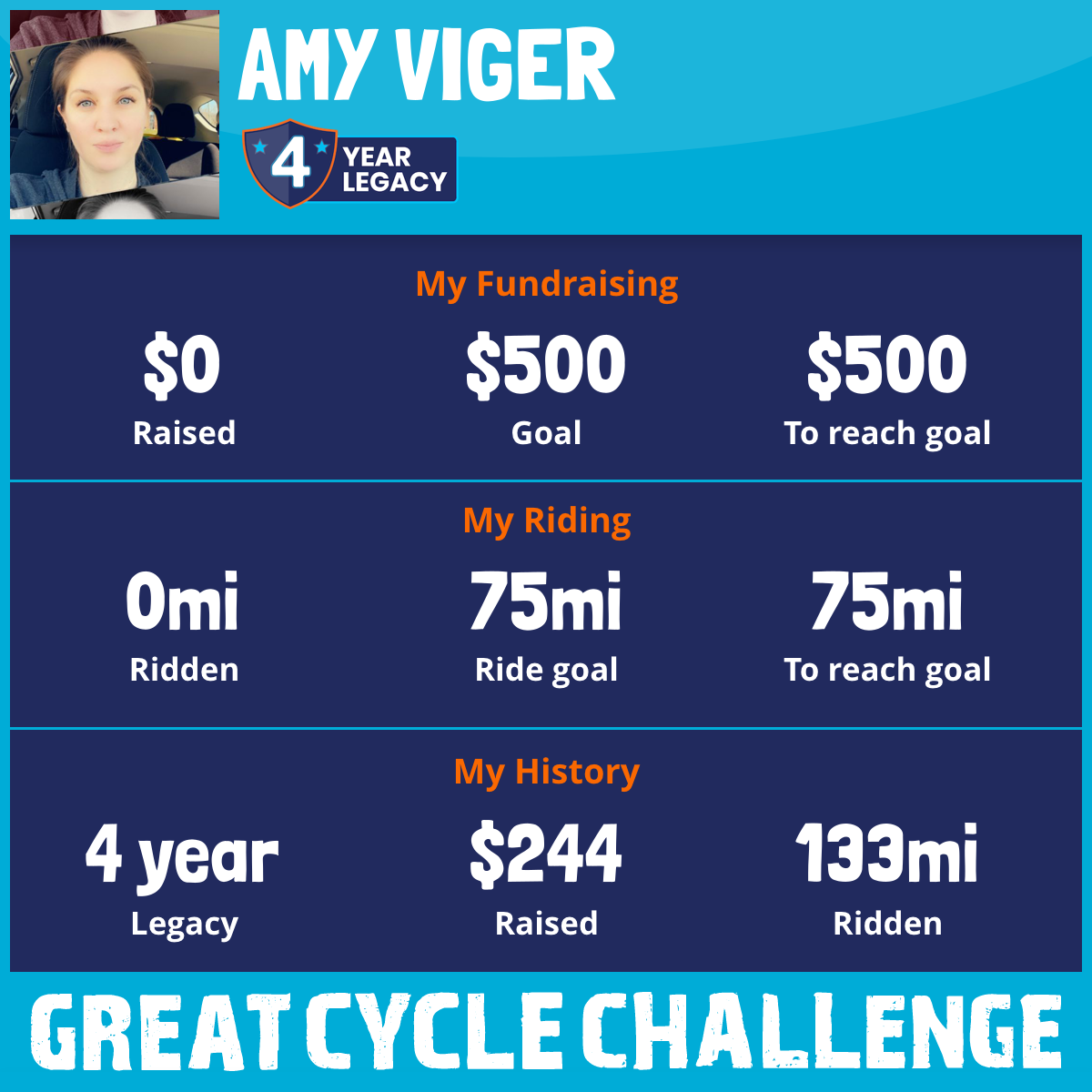 I am riding 75 mi in memory of Amber Rolle. Please sponsor me and support my challenge to fight kids' cancer and save little lives.