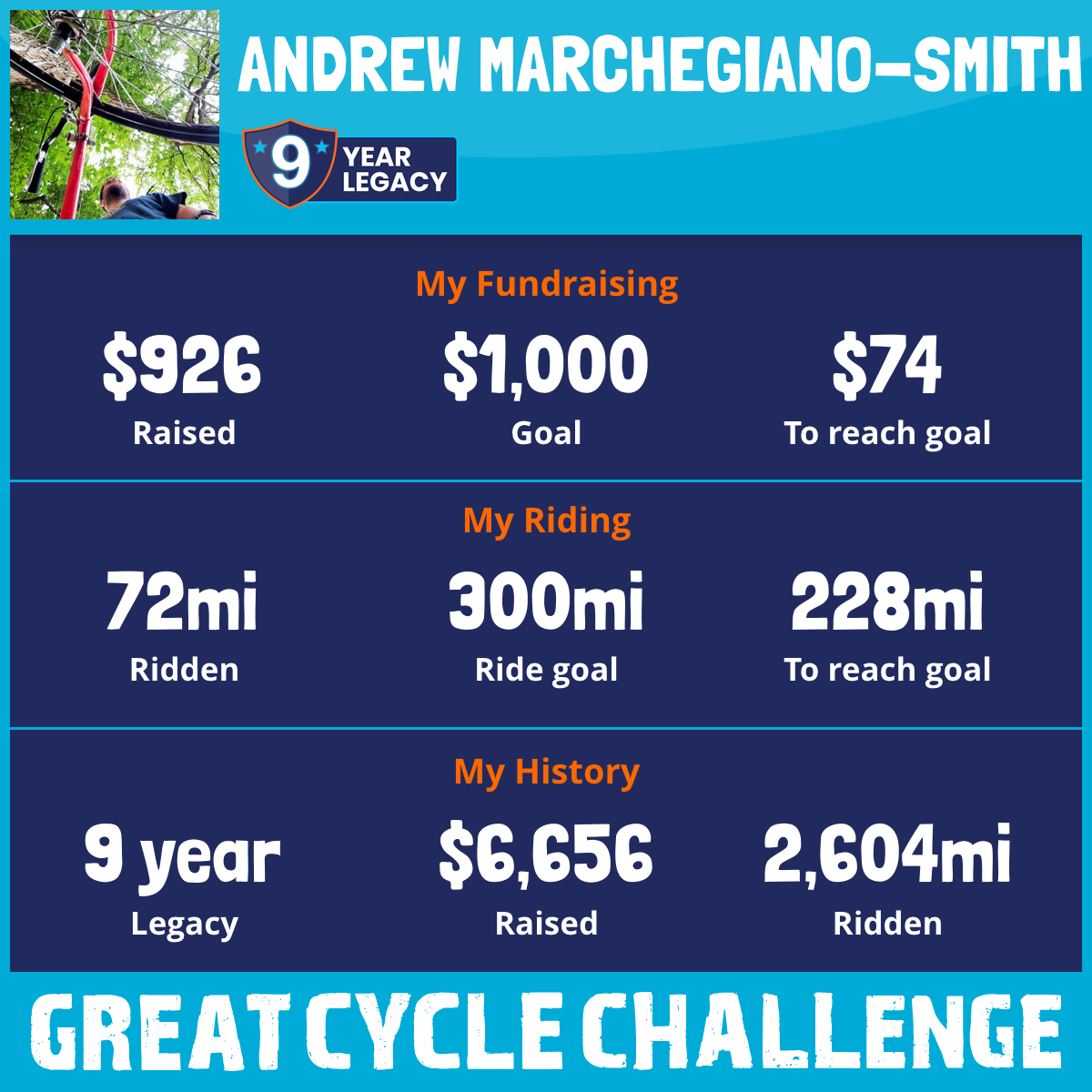 My brother just passed late last year due to a multi-year battle with Ewing's Sarcoma and I think its tasteful to dedicate this ride to him. however, I must also acknowledge the impact that cancer has had on my family. My niece and nephew both fought leukemia, thankfully to remission. My mother conquered late stage colon cancer when I was young and it changed the trajectory of the household. Several of my family members have battled breast cancer and we can all be thankful for relatively positive outcomes. There are several acquaintances my workplace that have had both positive and negative outcomes over the years. new treatments are developed every day, and so many of us are affected that it would behoove us to make some effort to make these treatments avalaible to everyone in need and to push to fund research into rare and unpopular diseases.