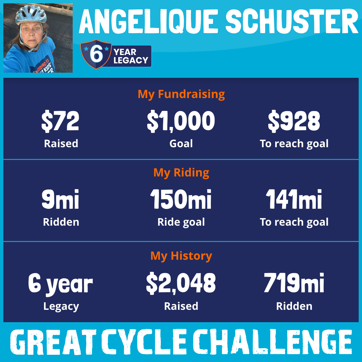 I am riding to rebuild by self-esteem and health. Riding helps me get through the constant stresses of every day life and responsibilities.