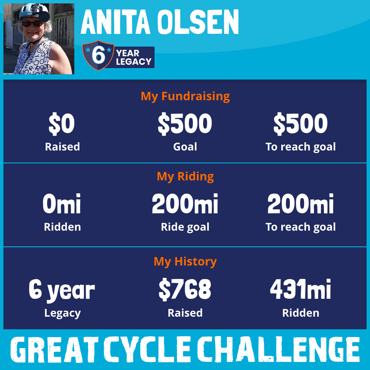 It’s 2023 – and again this September, I’m riding in “The Great Cycle Challenge,” to fight kids’ cancer.
