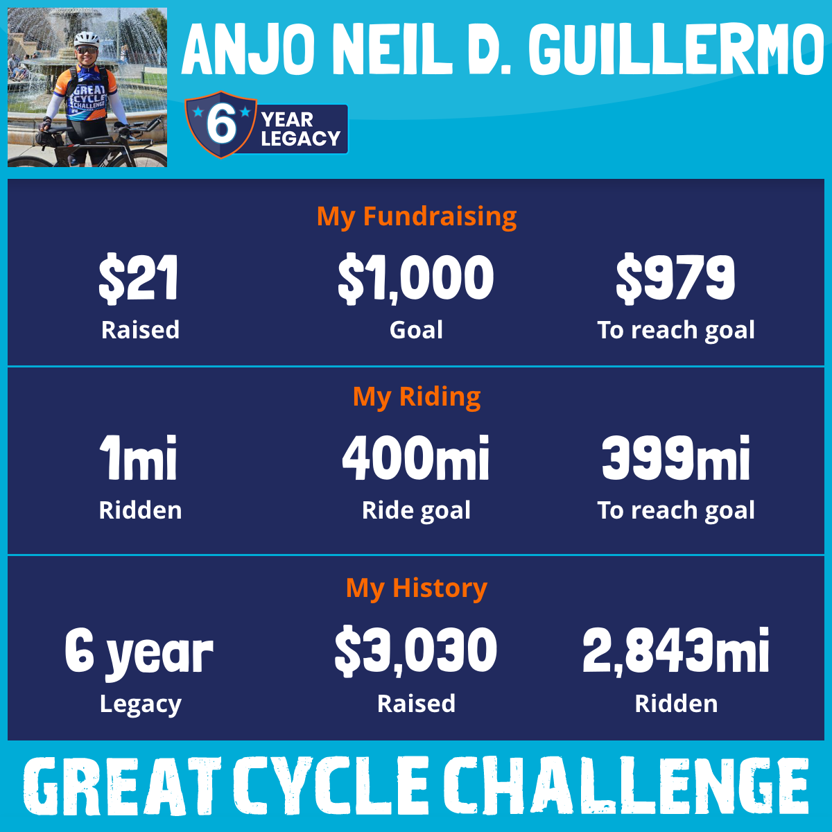 836 mi Ridden$547 Raised2021