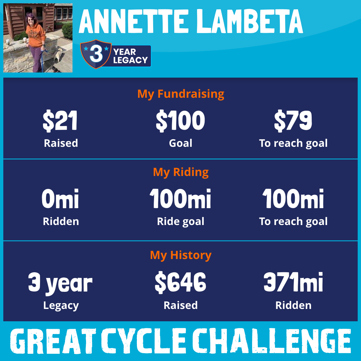 I am riding 100 mi in memory of Andjelko Lambeta. Please sponsor me and support my challenge to fight kids' cancer and save little lives.