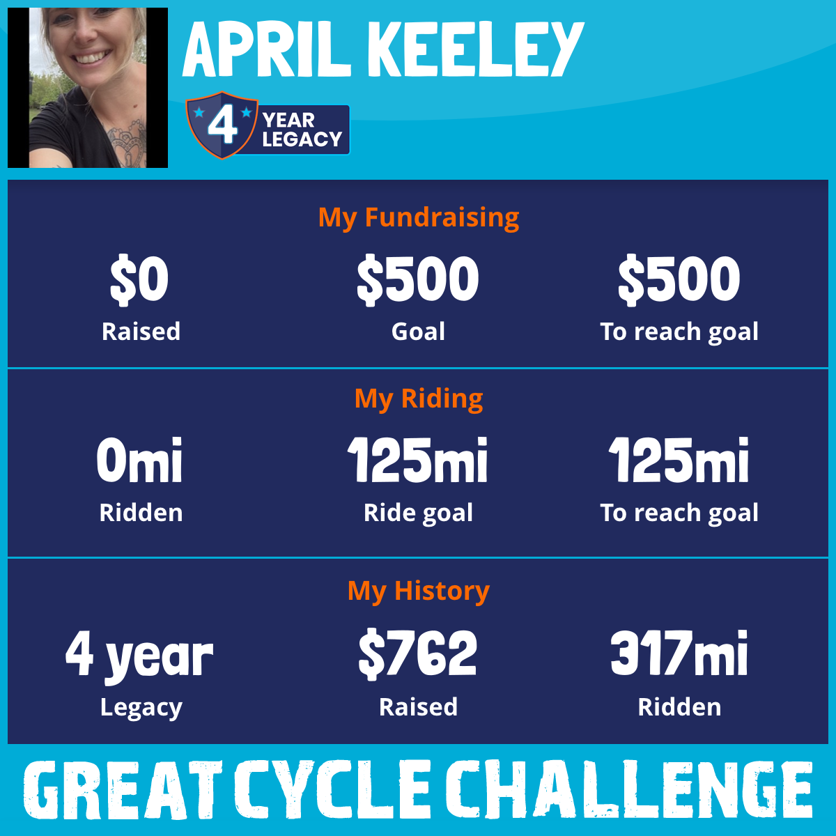 I am riding 125 mi to fight kids' cancer and save little lives. Please sponsor me to support my challenge!