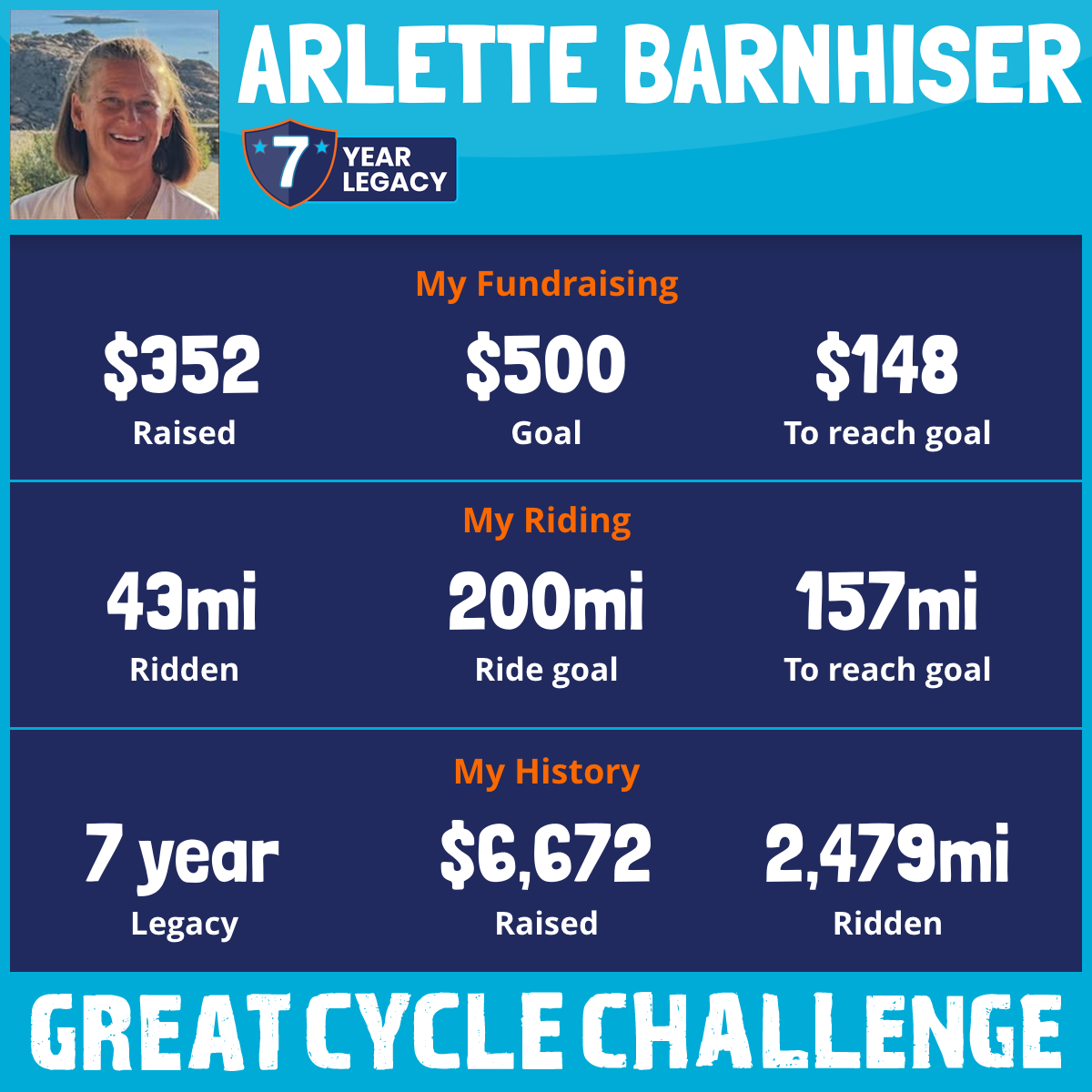 322 mi Ridden$1,150 Raised2023