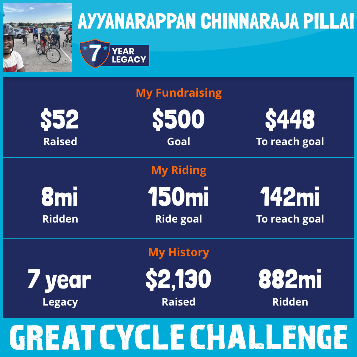 150 mi Ridden$158 Raised2020