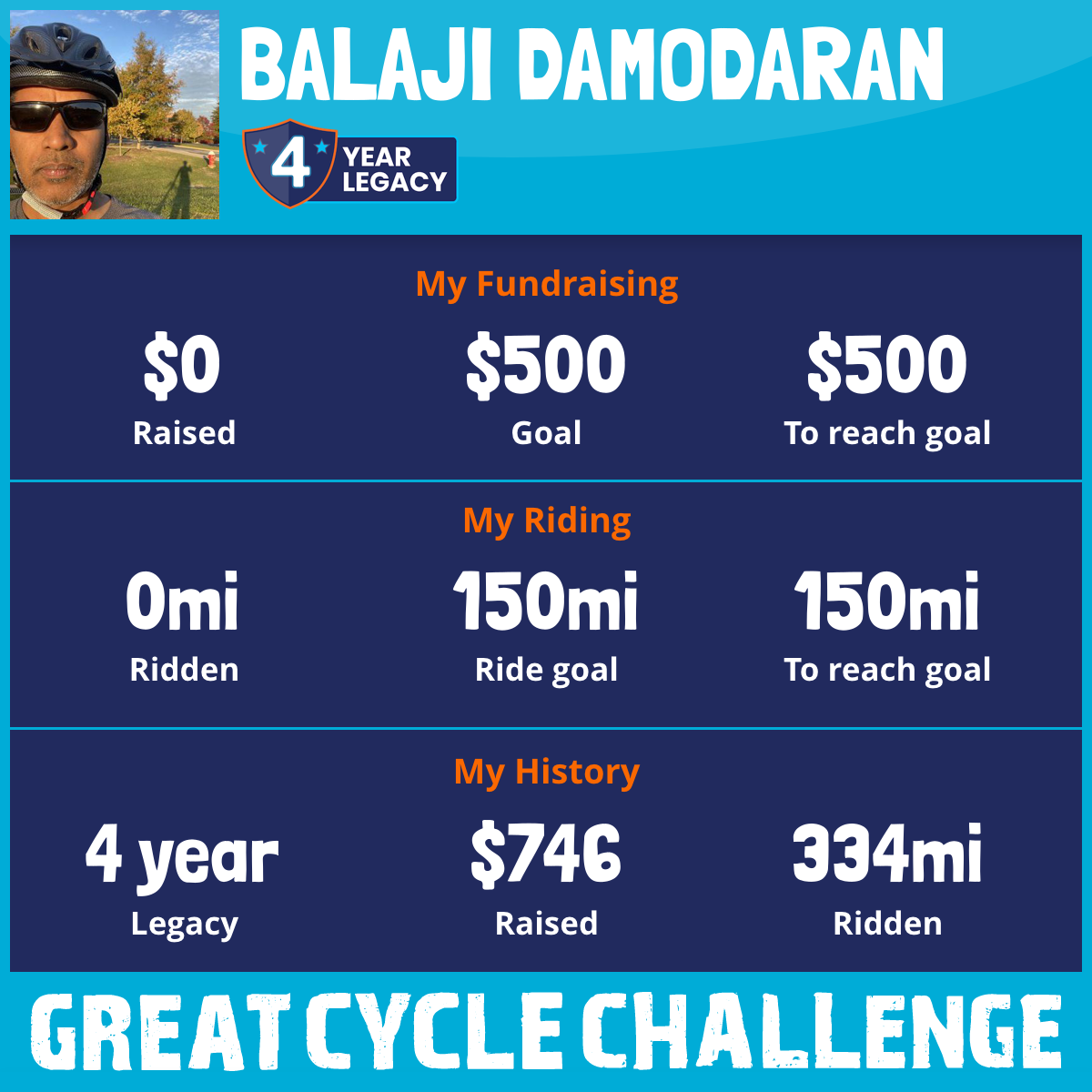 I am riding 150 mi for every little one undergoing treatment. Please sponsor me and support my challenge to fight kids' cancer and save little lives.