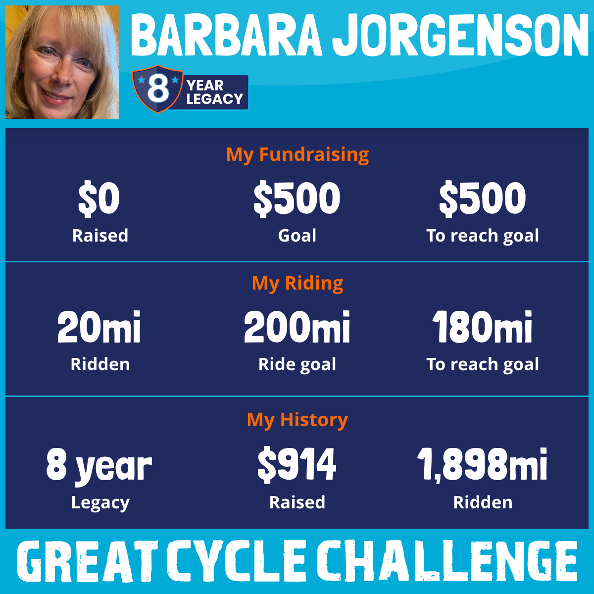 I am riding 200 mi in memory of Riding for all who suffer from cancer. Please sponsor me and support my challenge to fight kids' cancer and save little lives.