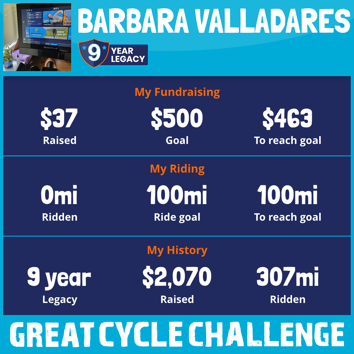 I ride in memory of my family members, friends and students, who have fought to live another day and dreamed of a lifetime that was cut way too short by cancer . And of course, Georgia Larky, my Mom, who may not have had "kids" cancer, yet lost her own battle with lung cancer way before we were ready to let her go. Miss you Mom.