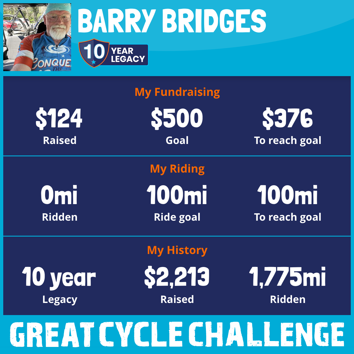 My son Brent came home from his work as a firefighter and challenged me to give to support The Little Fighter in his battle with kidney cancer. Four years later The Little Fighter supported my son in his battle with colon cancer. Today, Reid is a survivor! For a few years he was the face of Children's Cancer at the hospital where he received his treatment. This year he turned 17. I keep riding each year to honor this fellow and the way he is paving for others.