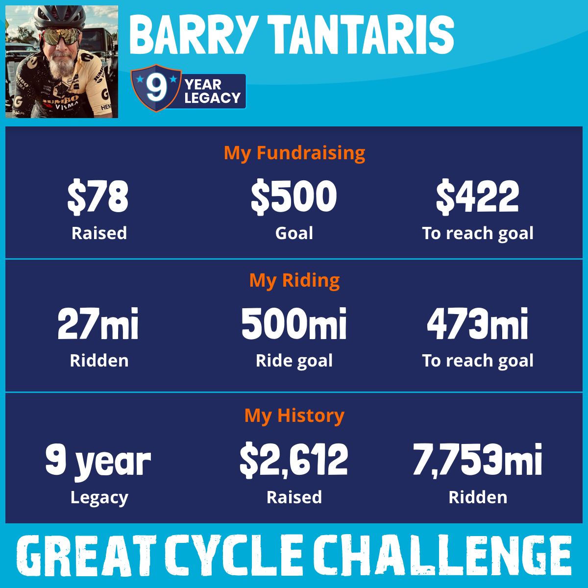 I am riding 500 mi in memory of Ilalouise Roderick Tantaris. Please sponsor me and support my challenge to fight kids' cancer and save little lives.