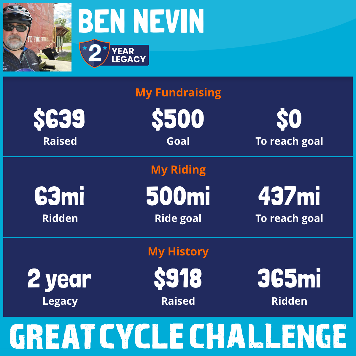 621 mi Ridden$1,052 Raised2025
