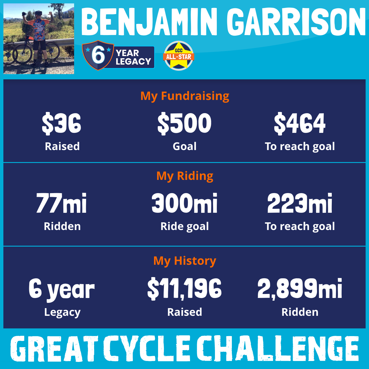 HELLO FRIENDS!! The 2025 Great Cycle Challenge starts September 1st and for the 6th year I will be riding to help support the fight against kids' cancer!