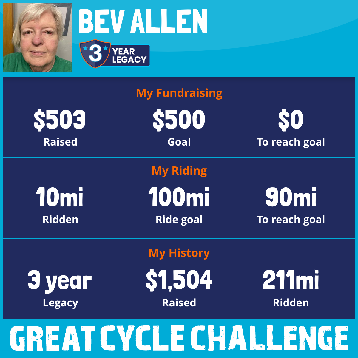 This September, I am taking part in the Great Cycle Challenge to fight kids' cancer! I am on a health journey and since January have lost 40 pounds. I am excited to use my improved fitness level to kick cancer's butt And I am asking for your support!