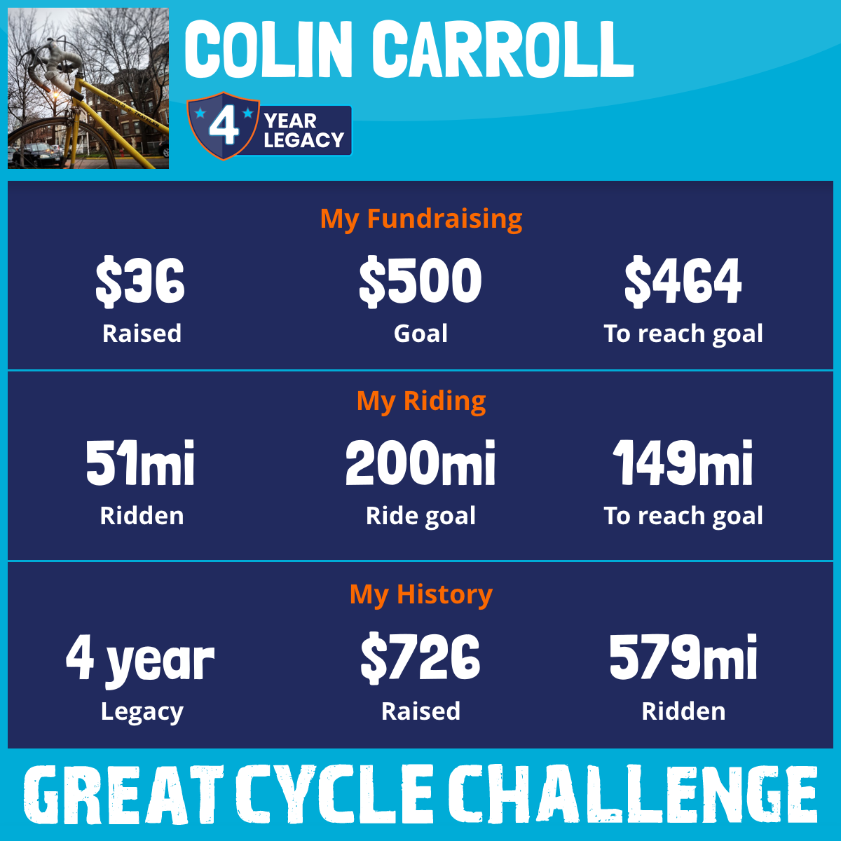 I am riding 200 mi in memory of my dad, Kevin Carroll. Please sponsor me and support my challenge to fight kids' cancer and save little lives.