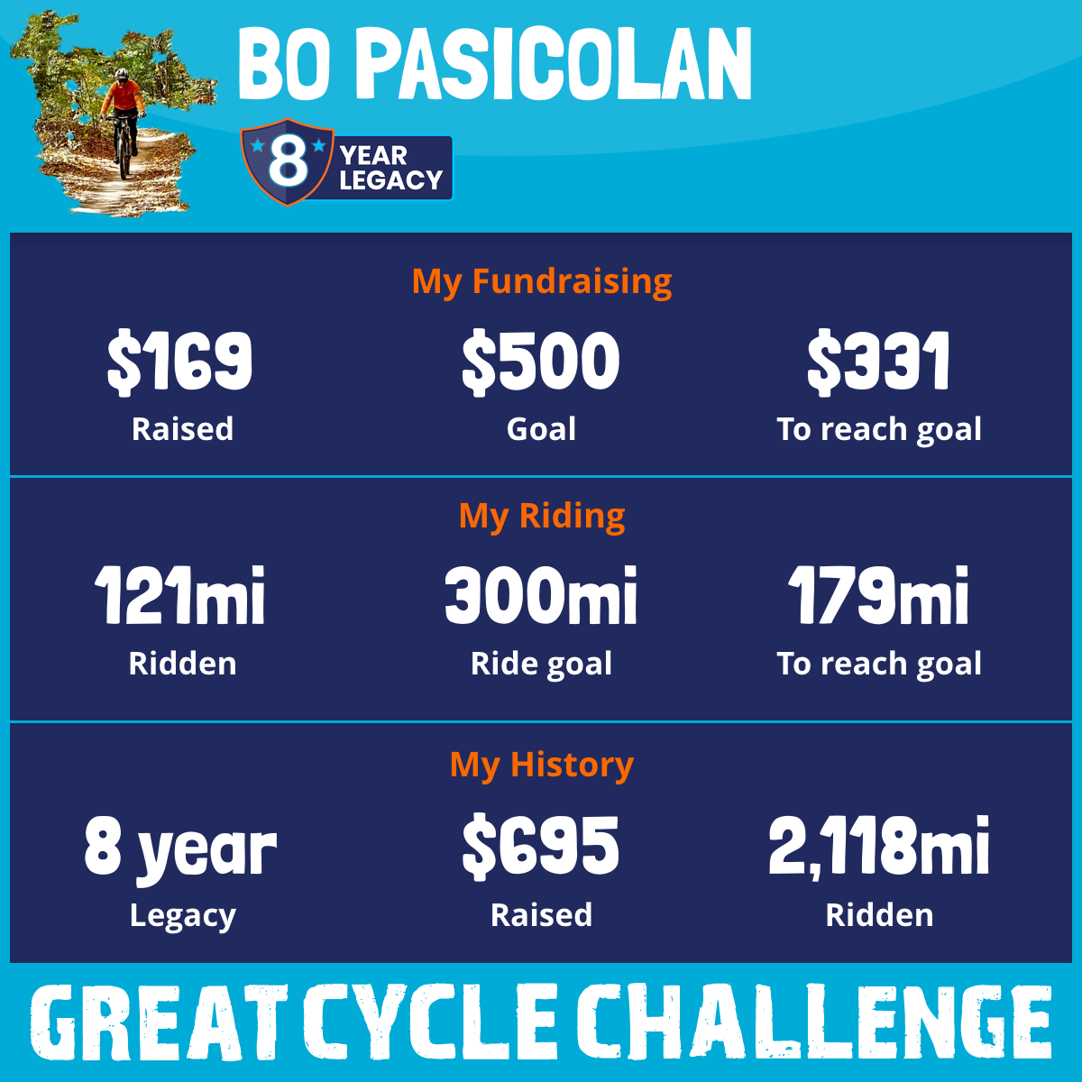 387 mi Ridden$121 Raised2023