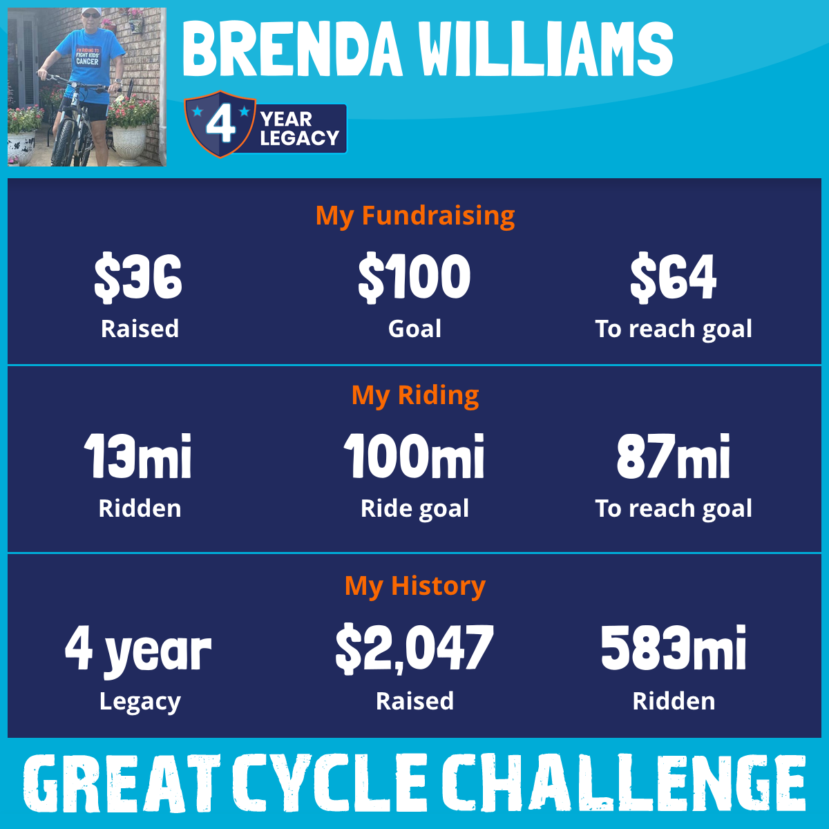 Hello again my friends and family, again This September, I am taking part in the Great Cycle Challenge to fight kids' cancer!