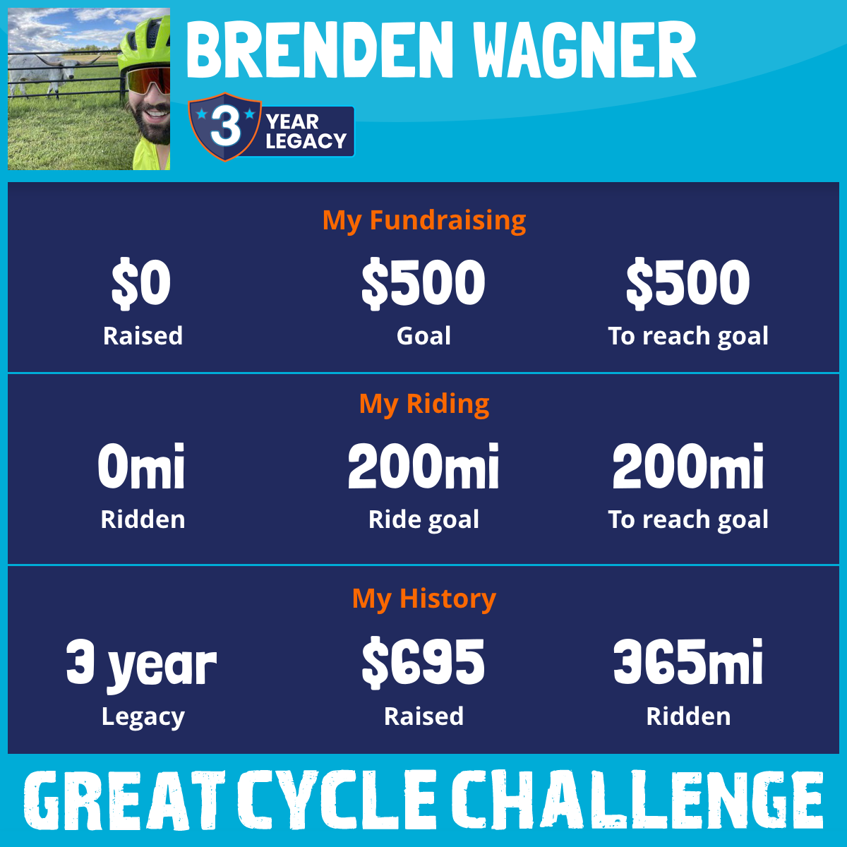 I am riding 200 mi for Abigail Wagner. Please sponsor me and support my challenge to fight kids' cancer and save little lives.
