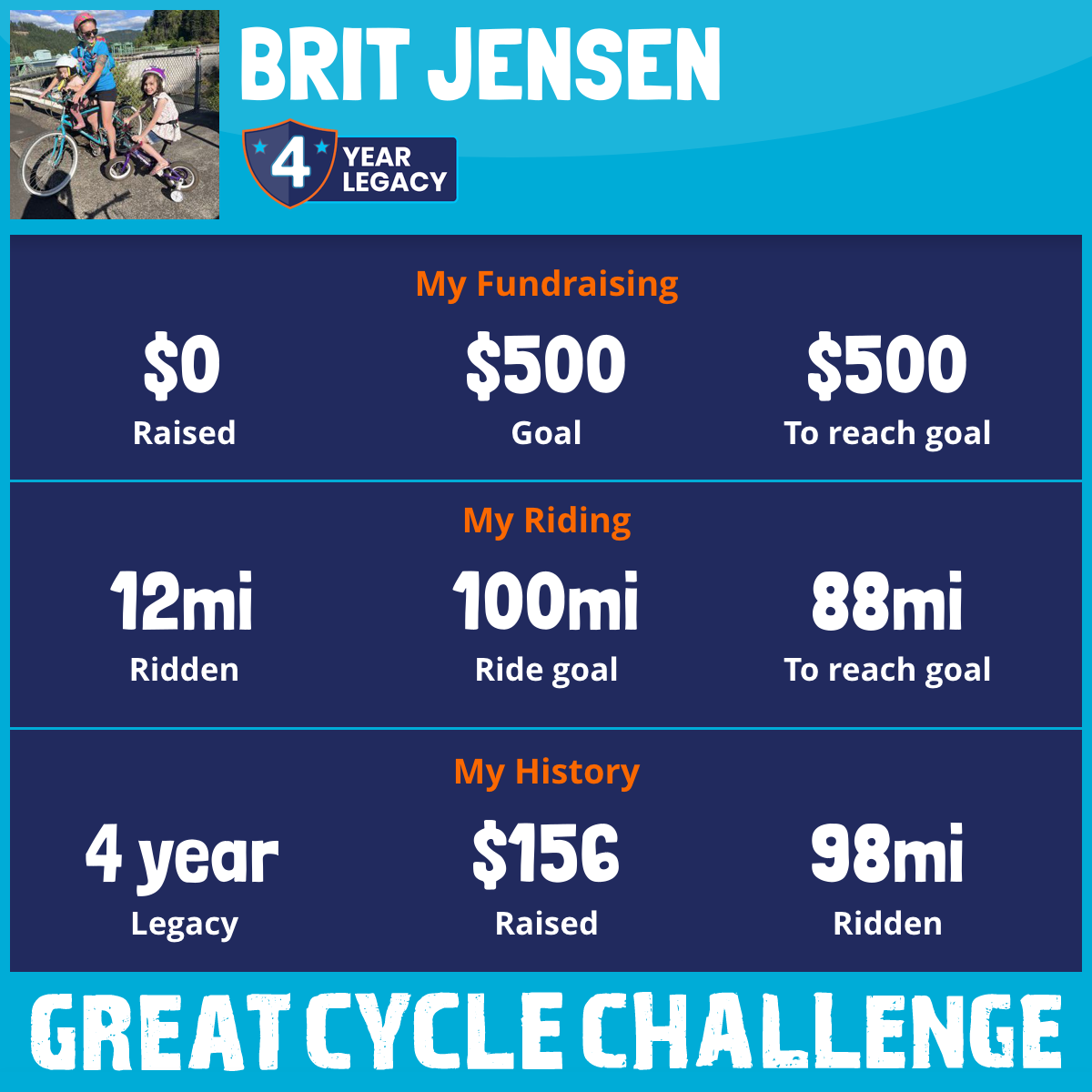 I am riding 100 mi to fight kids' cancer and save little lives. Please sponsor me to support my challenge!