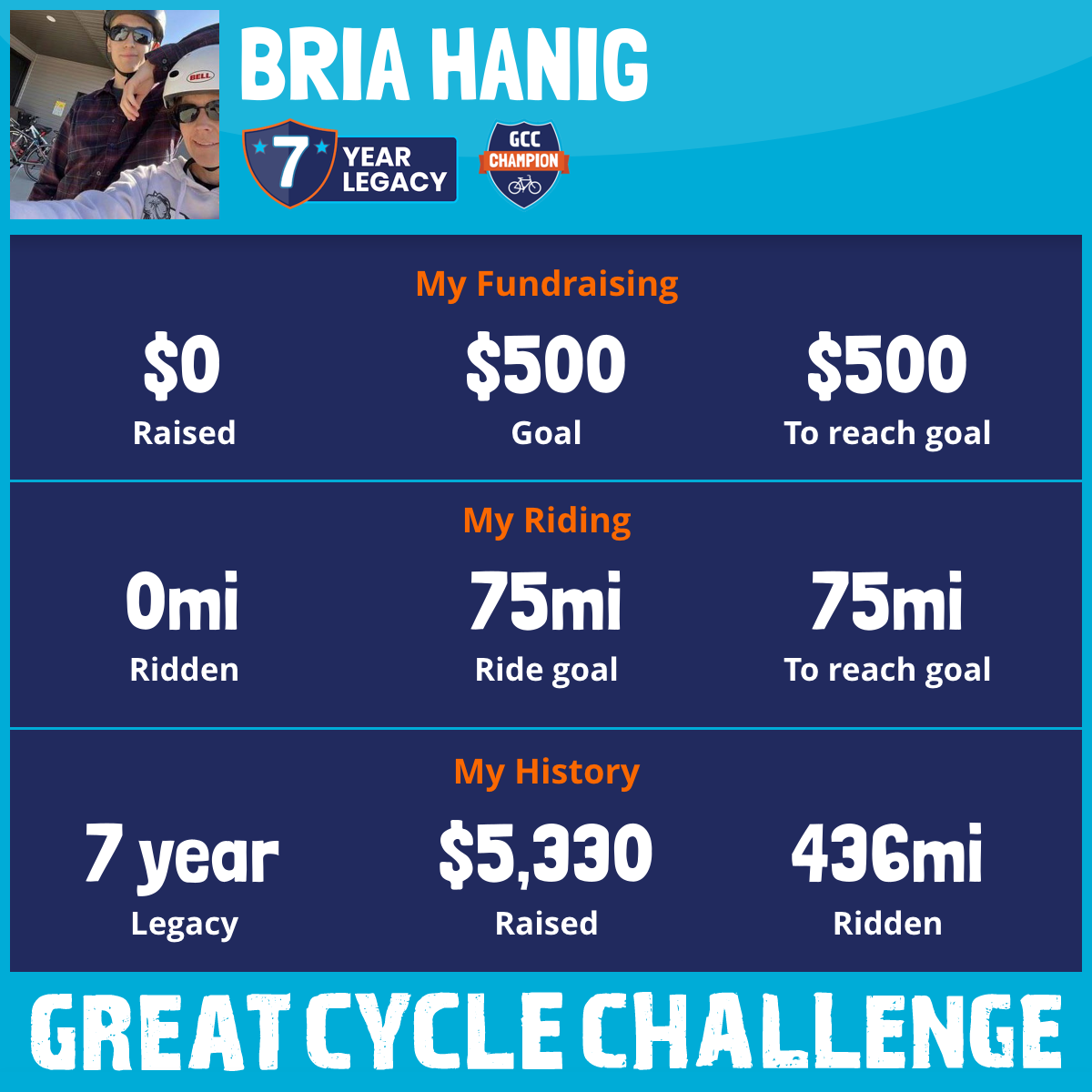 I am riding 75 mi in memory of CJT. Please sponsor me and support my challenge to fight kids' cancer and save little lives.