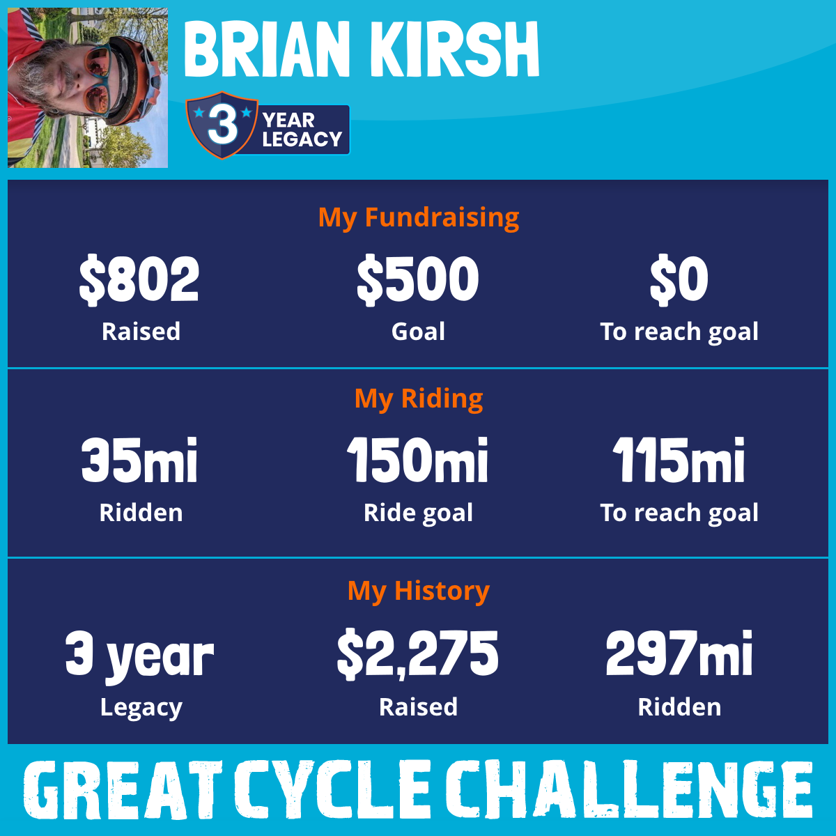 I am riding 150 mi to fight kids' cancer and save little lives. Please sponsor me to support my challenge!