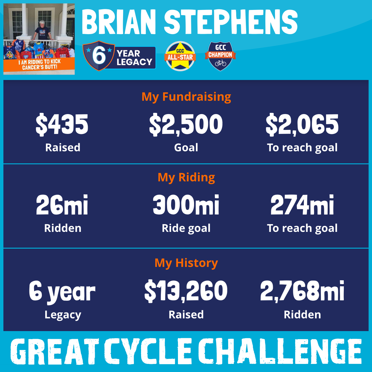 461 mi Ridden$2,785 Raised2021