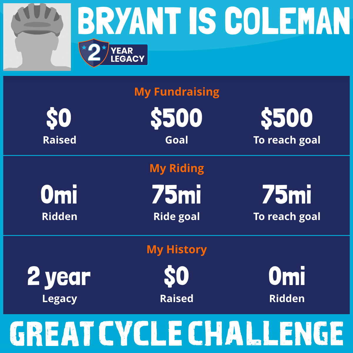 I've raised $0 My goal is $500 Donate Now