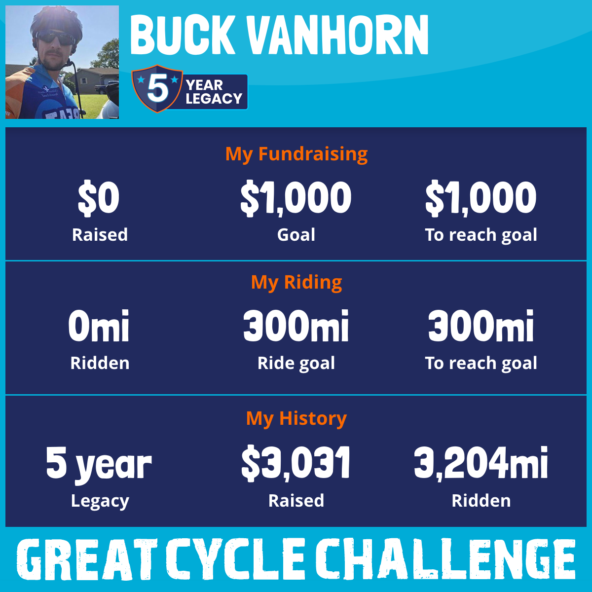 1,458 mi Ridden$1,381 Raised2023