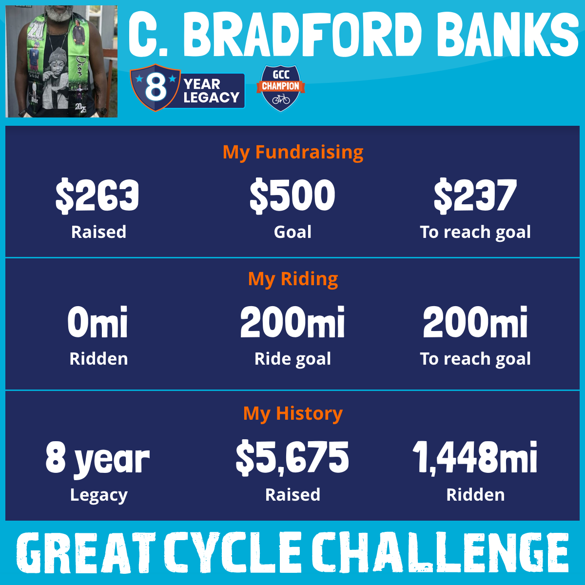 My mother Hildret was first diagnosed with cancer when I was a much younger boy. At that age I didn't understand what was going on, only that mommy was sick in the hospital. Through grace, modern medicine and time she pulled through. Fast-forward 35 years later it returned this past November. Mom tried to fight the good fight but her body was weak and tired from the 75+ years on the earth. So this year I am riding for my mother Hildret Lee Banks