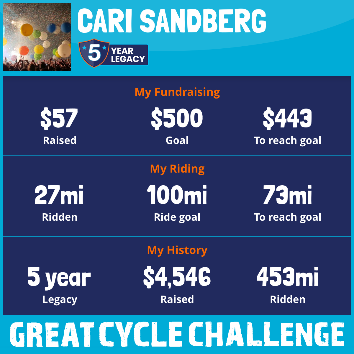 120 mi Ridden$1,702 Raised2021