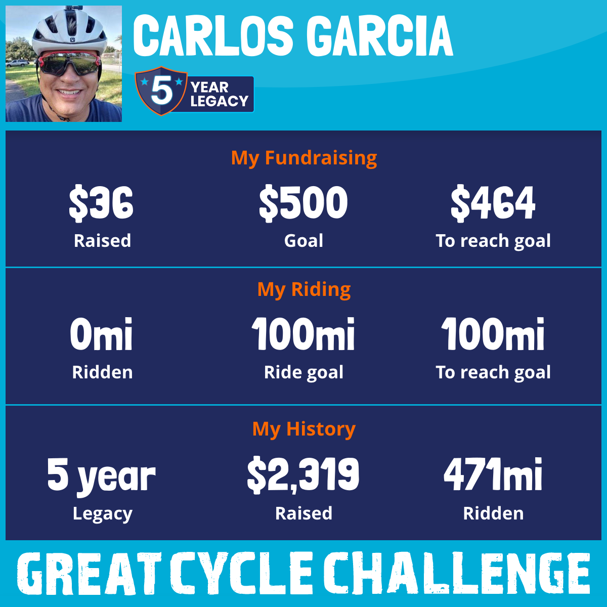 203 mi Ridden$1,245 Raised2021