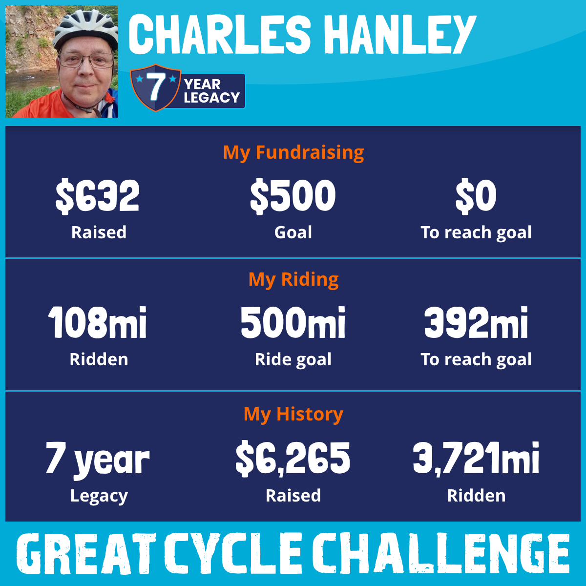 620 mi Ridden$1,317 Raised2023