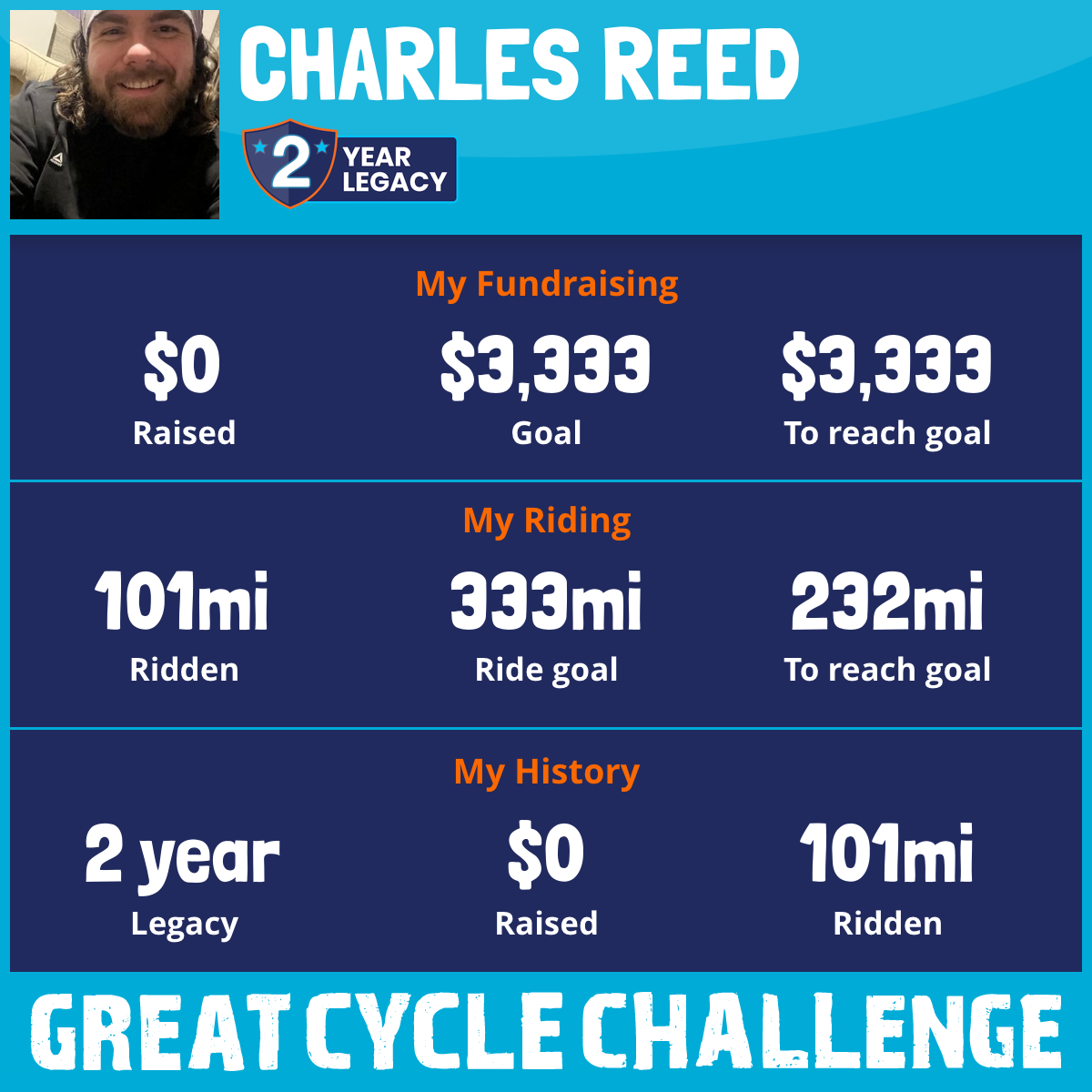 This September, I am taking part in the Great Cycle Challenge to fight kids' cancer. I’ve never done a fundraiser before but when I reach my ride goal of 333 miles I know that the goal of $33333 will already be achieved. Glory to God for both of those achievements. Bless these children and sew this seed. Children are worth way more than any money that could ever be donated. It’s hard enough to be a kid and these kids fight for their lives everyday. Make a difference.