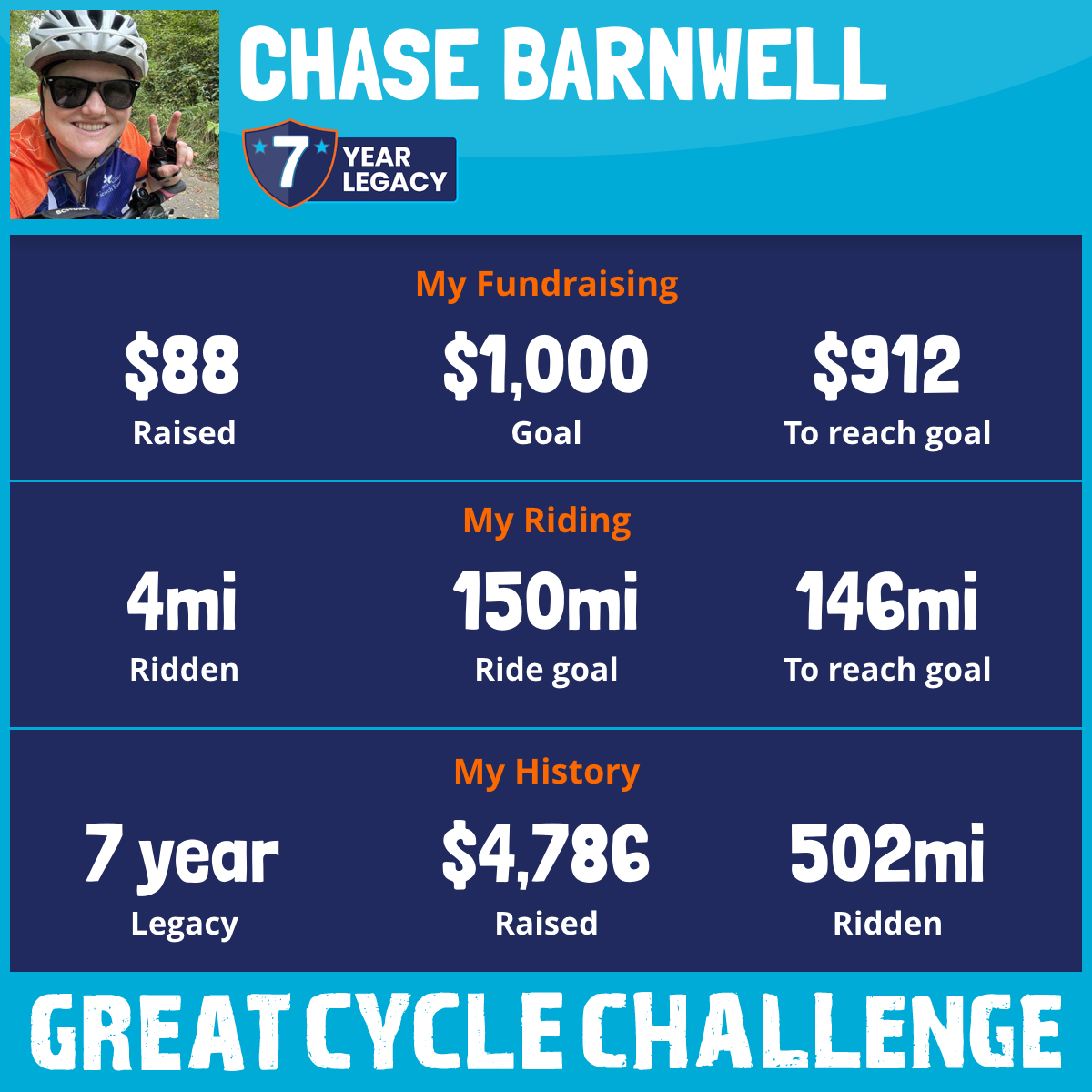 I am riding 150 mi in memory of Susie Verhaeghe & Joyce Barnwell. Please sponsor me and support my challenge to fight kids' cancer and save little lives.