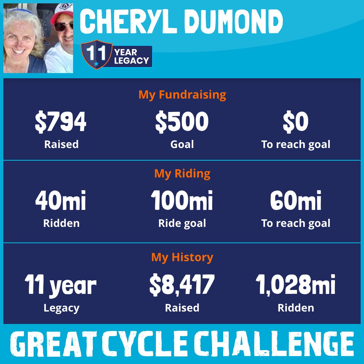 I am riding 100 mi for Terri. Please sponsor me and support my challenge to fight kids' cancer and save little lives.