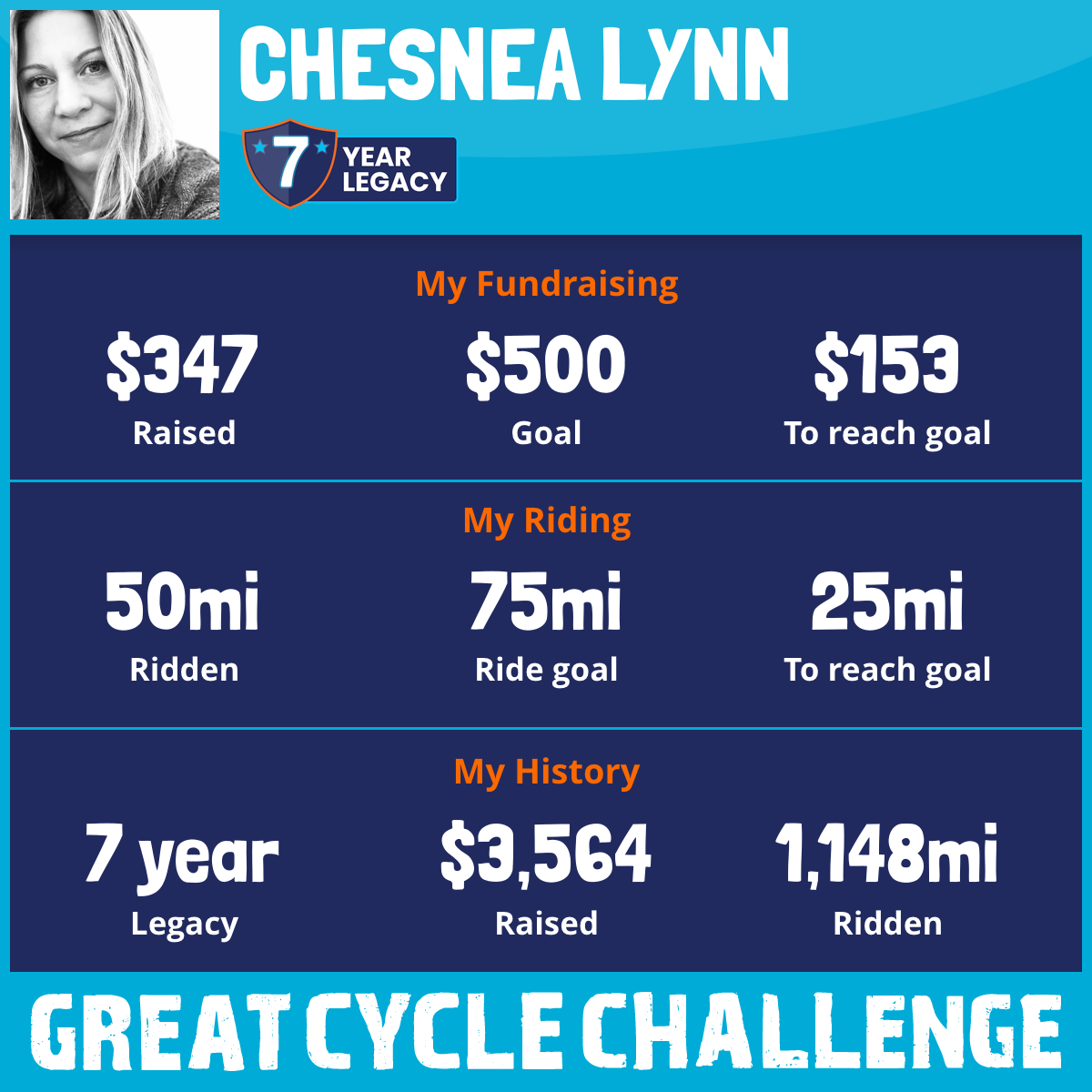 So I am raising funds through my challenge to help these kids and support Children's Cancer Research Fund to allow them to continue their work to develop lifesaving treatments and find a cure for childhood cancer.