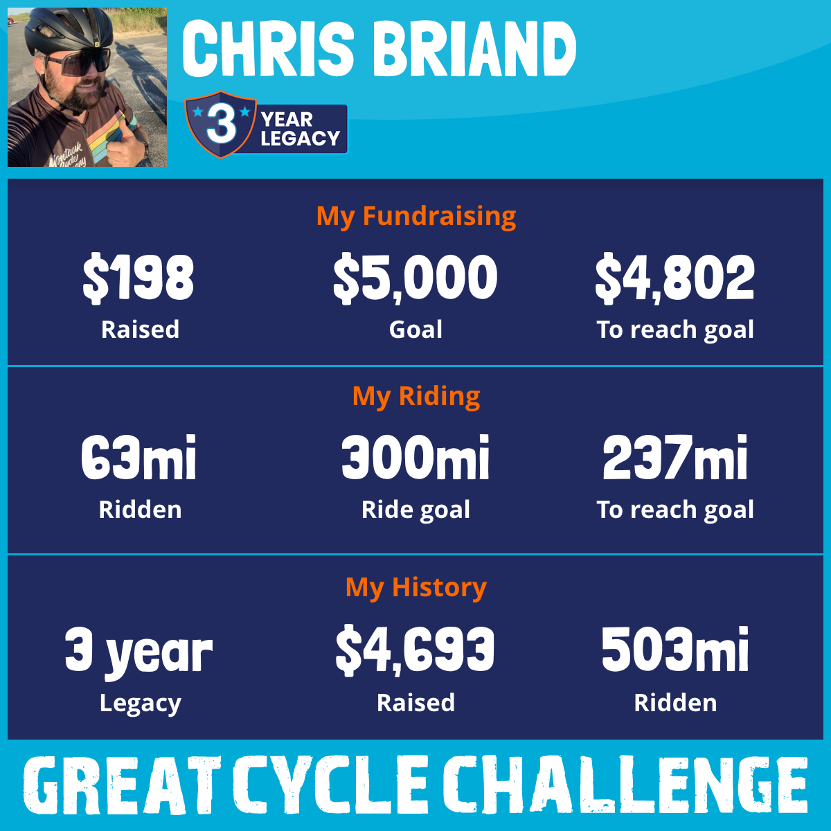 I am riding 300 mi for Toni-Ann Bowman, Jane Bowman & Bob Bowman. Please sponsor me and support my challenge to fight kids' cancer and save little lives.