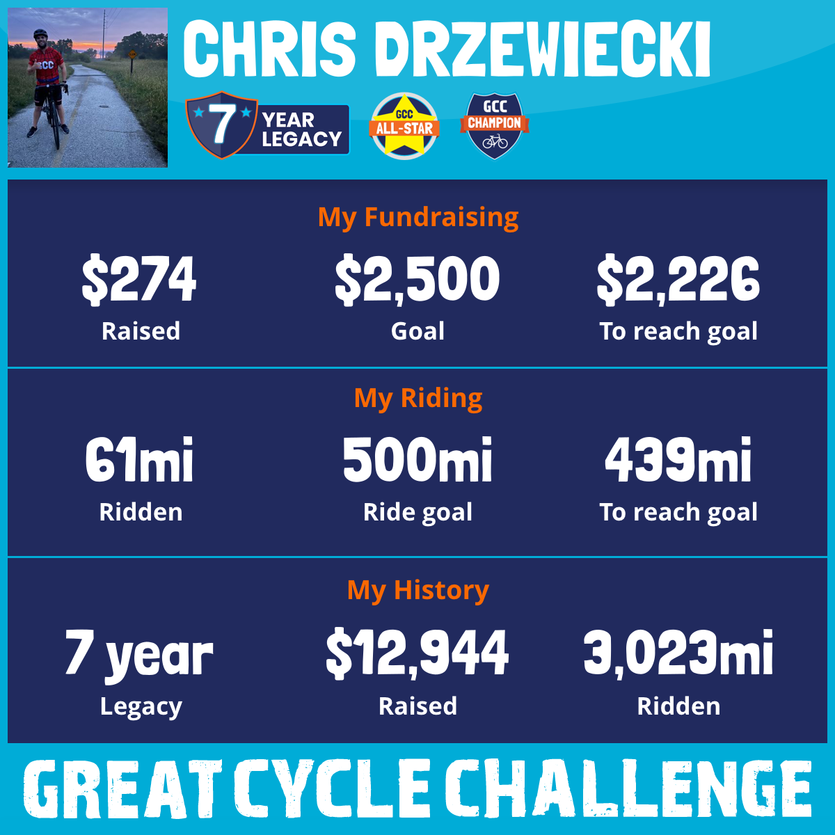 434 mi Ridden$2,259 Raised2021