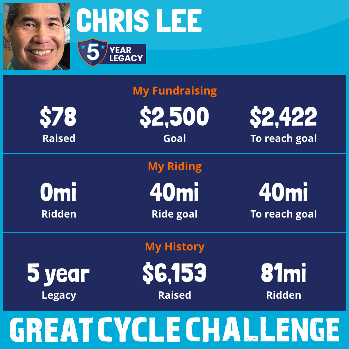 48 mi Ridden$3,265 Raised2024